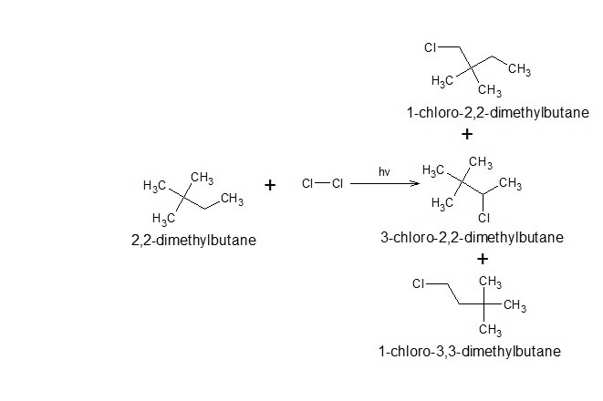 When 2,2-dimethylbutane reacts with chlorine in the presence of light gives three isomers that is