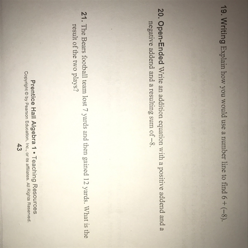1. You’d use a number line because since the second number is a negative it’s subtracted from six so you would count 8 don’t the number line from 6