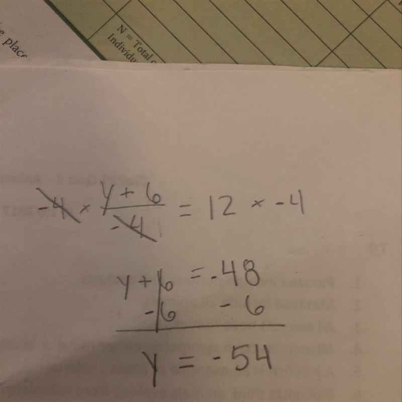 Y+6/-4 = 12 What is y? Show your work. Algebra confuses me :/
