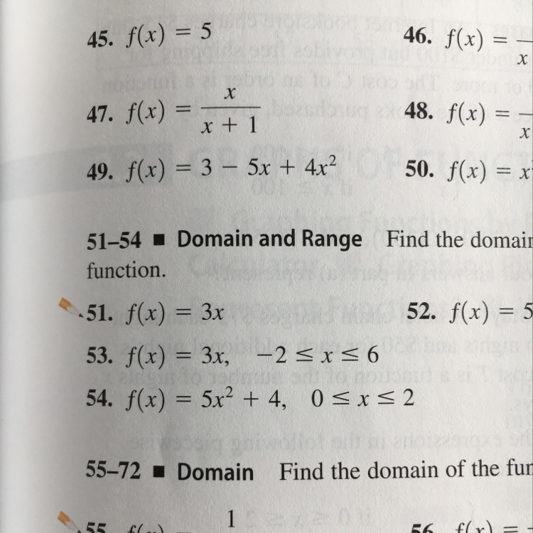 How do I find the domain of f(x)=5x^2+4. When 0<=x<=2 #54