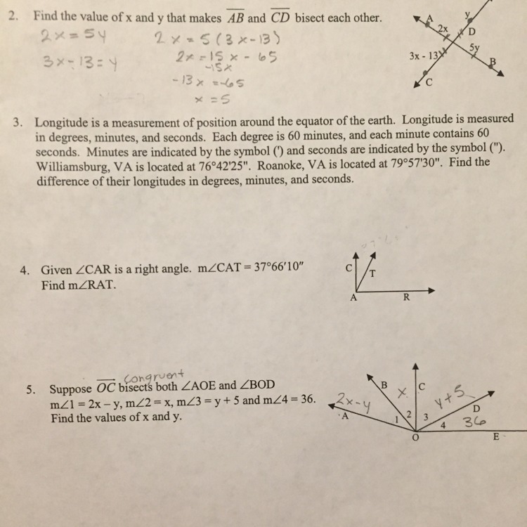 5. The angle bisector divides the bisected angle into two equal parts. Because OC bisects ∠BOD, we know ...