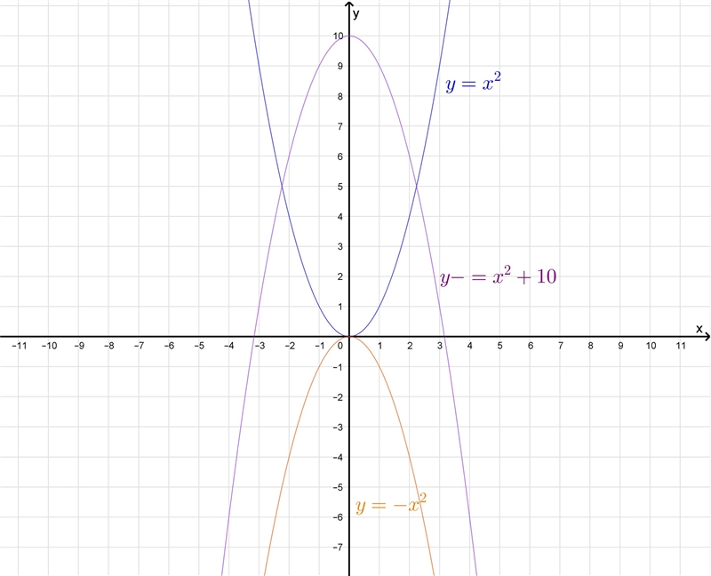 Plot the graph of the function y = x ^ 2, reflect over the x-axis and move it 10 units up.