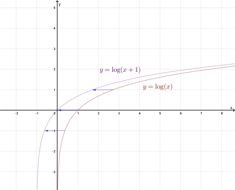 Plot a graph of the function y = log (x) and move it by 1 unit to the left.