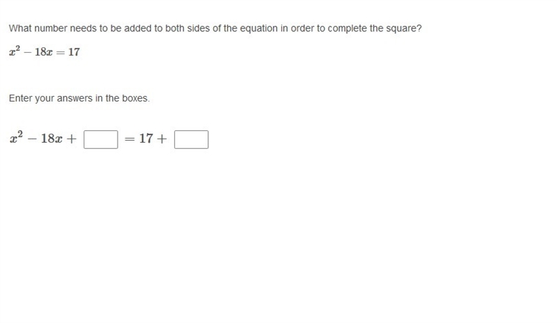 PLEASE HELP ASAP!!! CORRECT ANSWER ONLY PLEASE!! What number needs to be added to both sides of the equation in order to complete the square? x^2 − 18x = 17