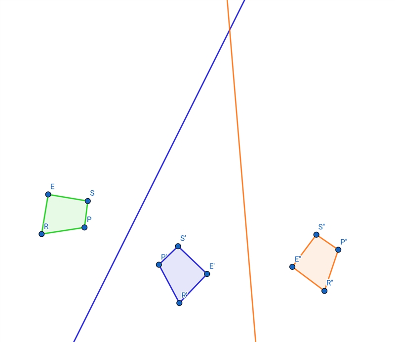 In the attachment, the green quadrilateral RESP is reflected across the line y=2x+7 (blue) to form the blue quadrilateral R'E'S'P'. That is then reflected across the line y = -12x +5 (orange) to give the orange quadrilateral R"E"S"P", which is a rotation of the pre-image.