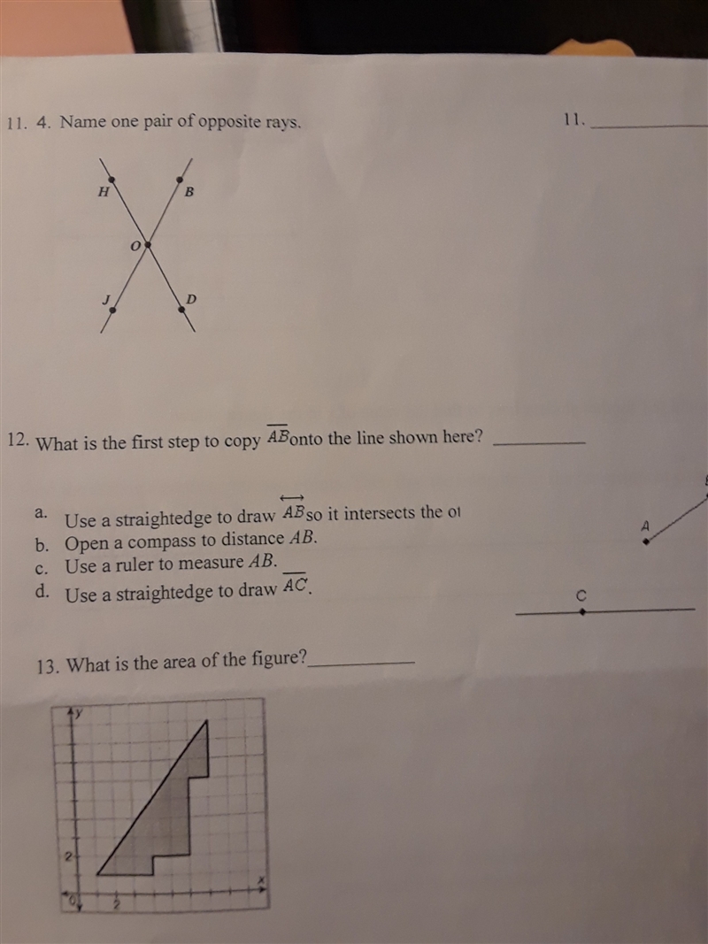 11. Opposite rays are rays that together make a line. The only point they have in common is their mutual end point.