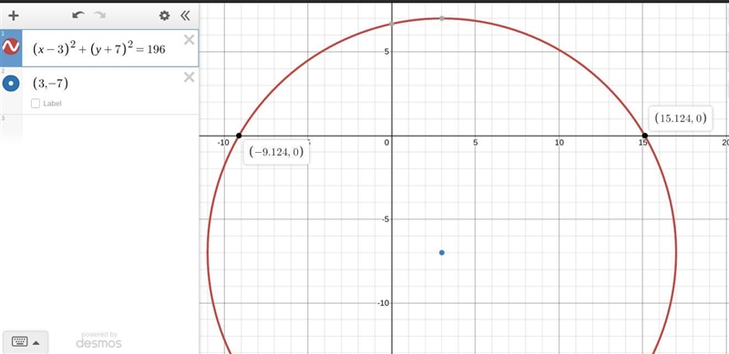The points at distance 14 from (3, -7) on the x-axis are (3±√147, 0).