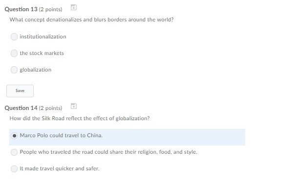 Question asked on number 14. How did the Silk Road reflect the effect of globalization