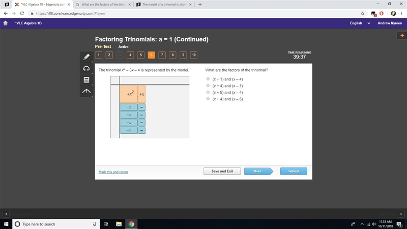 x² - 3x - 4 = (x - 4)( x + 1)