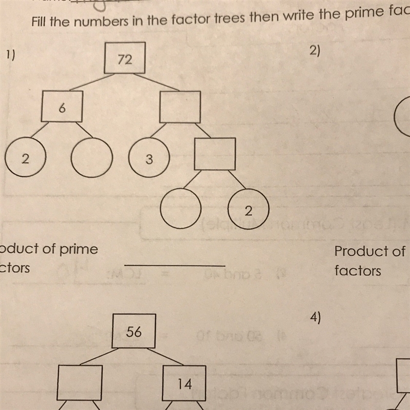 First you are want to think of what two numbers will give you 72. It gives you 6, so you need to think of 6 times what will give you 72 (which is 12). Next you want to break down the 12, and you do the exact same thing you did with the 72. It gives you the number 3 so you need to find out 3 times what equals 12 (which is 4). Then you break down the 4 the same way. You have to do that to the 6 as well.