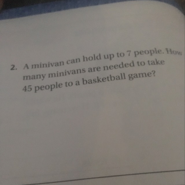 7 vans because 7x6 is 42, and since there is 45 people, you'll have to add another van because that minivan can only hold up to 7 people.