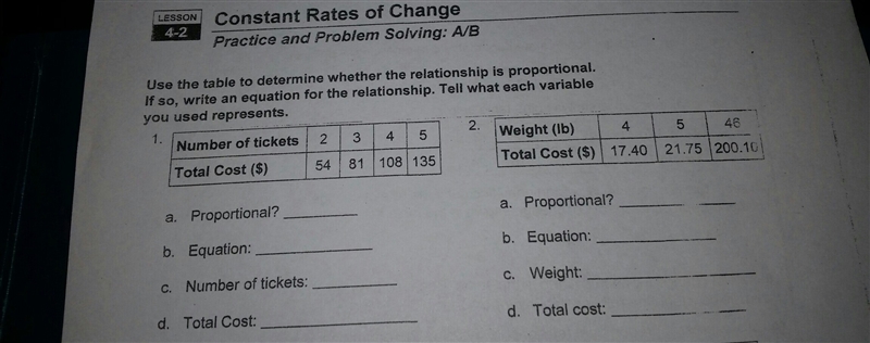 y=4.35x, c. Weight = x, d. Total cost = y.