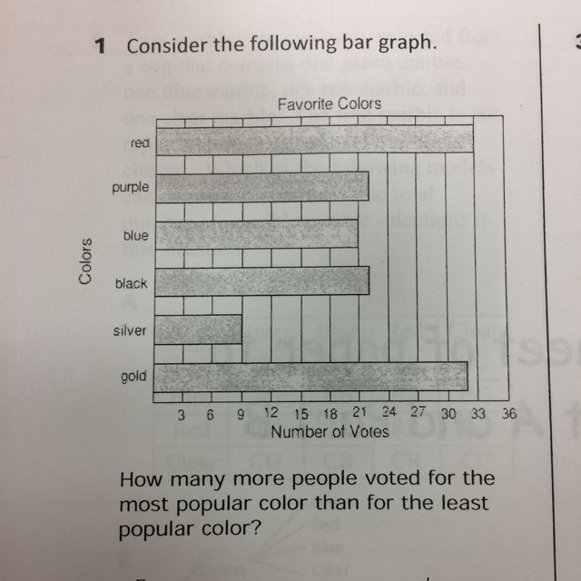 red is most popular with 33 votes. silver is least popular with 9 votes.