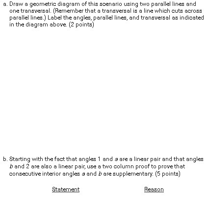 Reason: angle a is 145 deg and angle b is 35 deg, the two angles add up to 180 degrees.