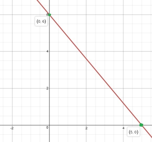 Plotting points (0,6) and (5,0) on the graph and draw a line by joining the points.