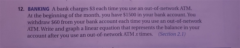 Each withdrawal will total $63, which includes $60 cash and a $3 fee. Then x withdrawals will total 63x dollars. This amount is subtracted from the initial account balance of 1500 to give the amount remaining.