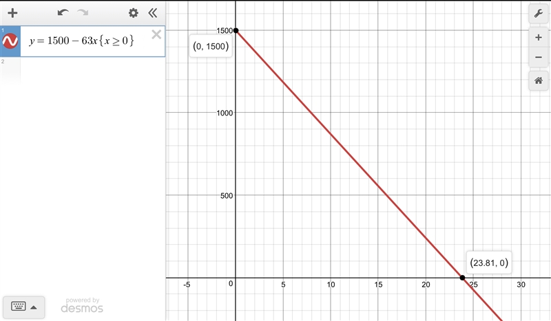 The graph will have a y-intercept of 1500, and a slope of -63.