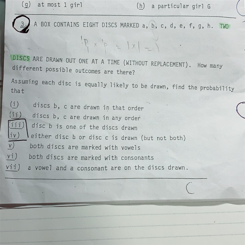 in two it states disc b is drawn, in three it states that either disc b or disc c is drawn so there is a possibility that c is drawn instead of b.