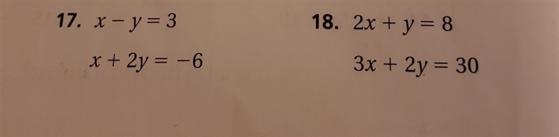 17 would be x=3-y and y=3+x. 18 would be x=4-y/2 and y=2x+8.