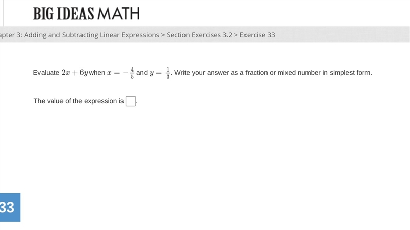 it is 2/5...You plug in -4/5 into x and plug 1/3 into y