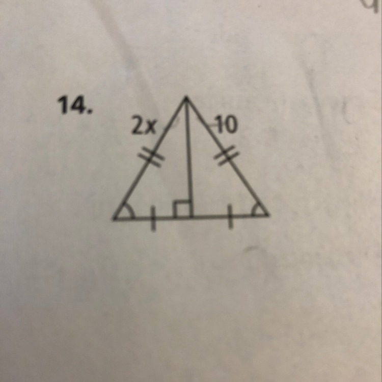 so 2x = 10 because they are equal