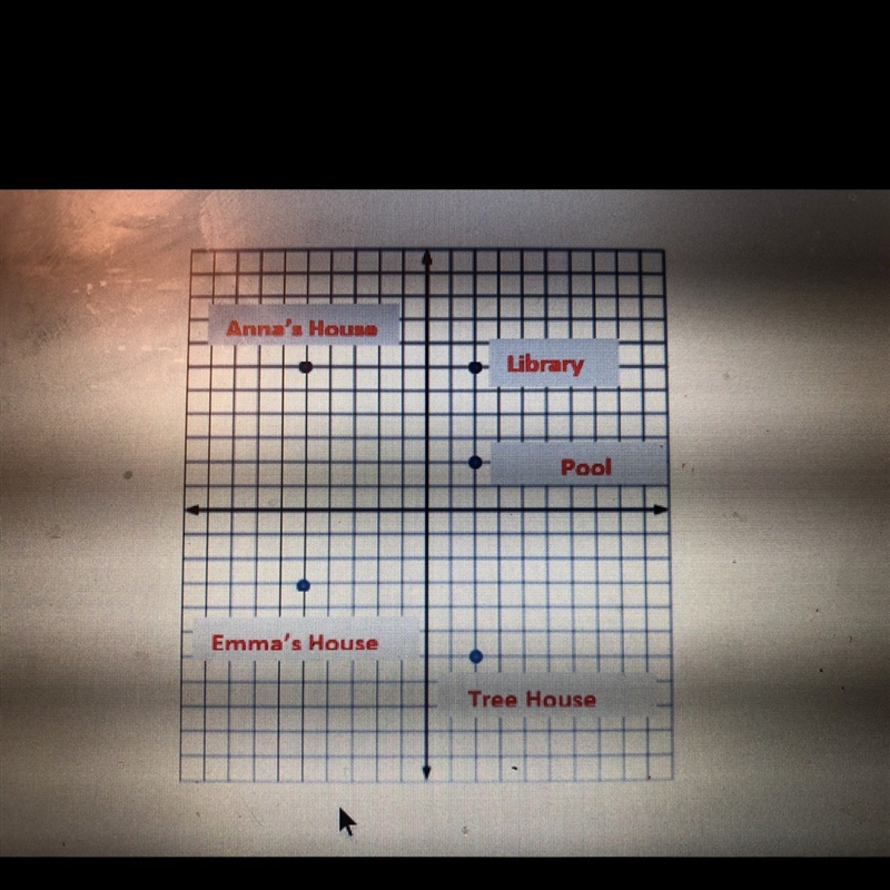 The horizontal distance from Emma's house to tree house is 7 units and the vertical distance is 3 units.