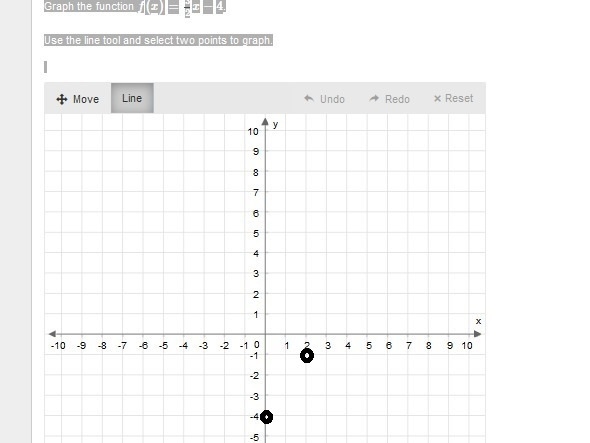 Graph the function f(x)=32x−4. Use the line tool and select two points to graph.