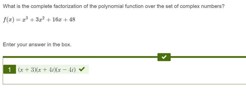 Result: (x + 3) ( x + 4i ) (x - 4i ) ← complete factorization