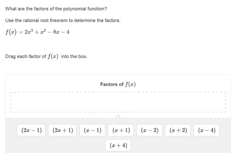 PLEASE HELP ASAP!!! CORRECT ANSWERS ONLY PLEASE!!! I CANNOT RETAKE THIS!! What are the factors of the polynomial function? Use the rational root theorem to determine the factors…