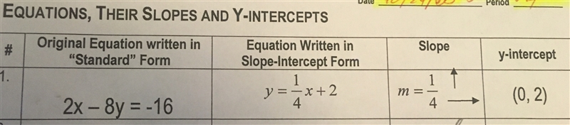 Equations, Their Slopes And Y-intercepts. please one question number 16. Thank you!