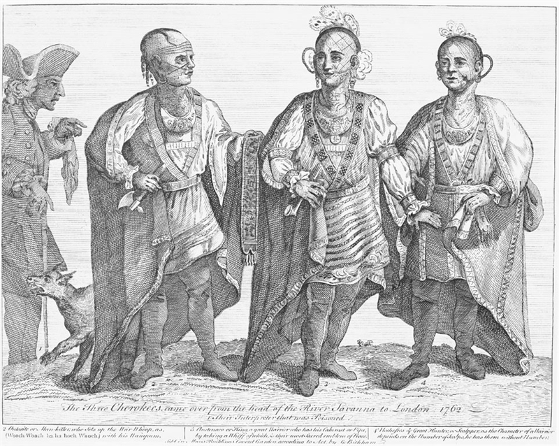 "His Majesty: lieutenant Timberlake has made this encounter possible, and we are very thankful to him for that. Many other brothers would have wanted to come and meet you, but we have been the fortunate ones. We come to your presence in peace, carrying a pipe and a wampum, sacred objects, to ask you for your help and your intervention, since you and your subjects are our brethren. We don't want the white settlers to occupy our ancestral lands any further. This is our homeland. If they do, our hunters, scalpers and warriors will be ready to fight them".