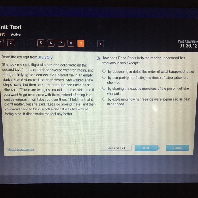 How does Rosa parks help the reader understand her emotions in the excerpt?