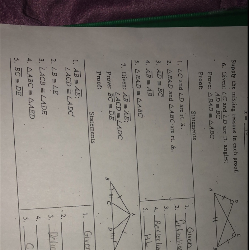 I am stuck on number 6 and 7. It is a two column proof in geometry. Chapter I’m on is isosceles triangle theorems.