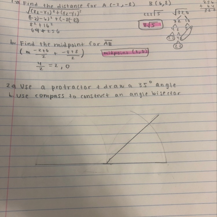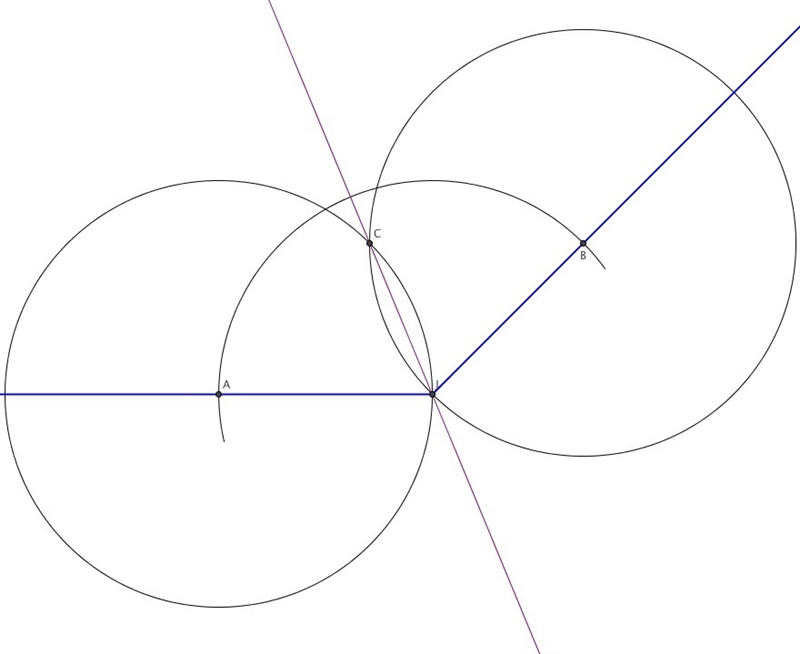 Repeat the above instruction using B as the center. The arcs (or circles) will intersect. Call the point of intersection C. The angle bisector is the line from the vertex through point C.