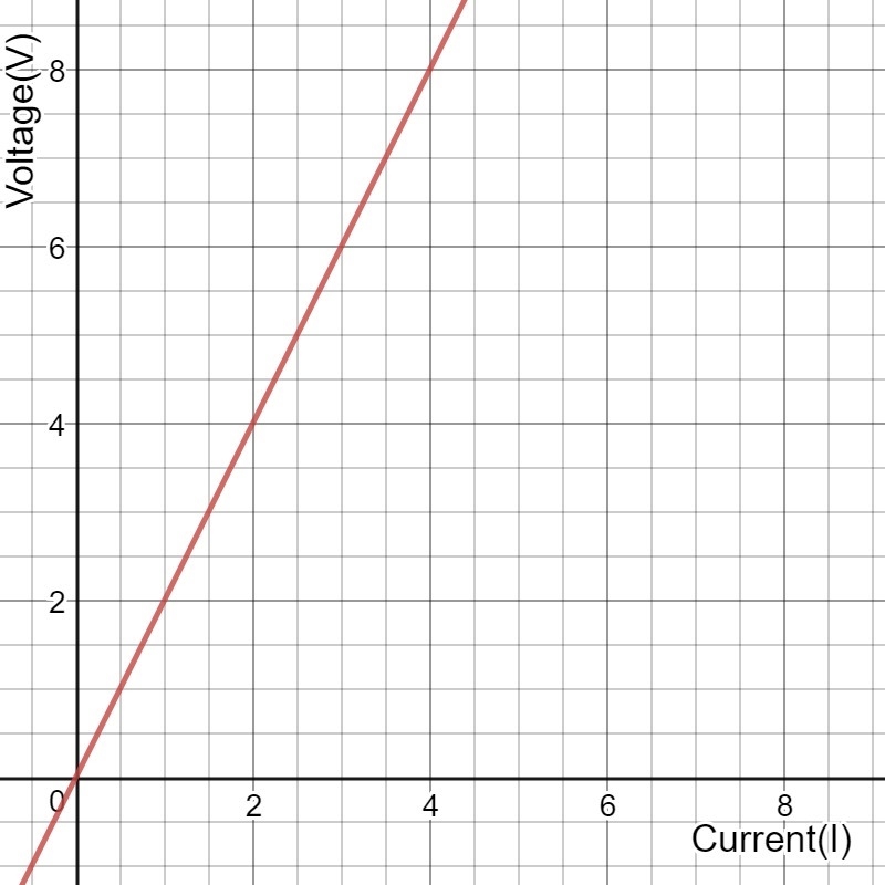 Ohm's law can be represented in a graph with the voltage is on the -axis and the current is on the -axis. The gradient of such a graph will be the resistance. A graph of the characteristics for a 2Ω resistor is attached with this solution.