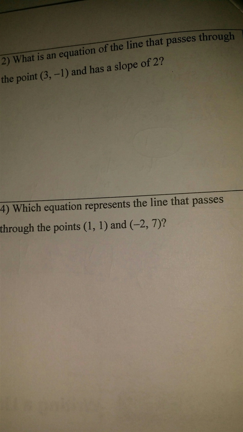 Question 2 Answer: y + 1 = 2(x - 3)