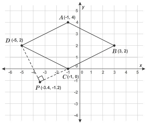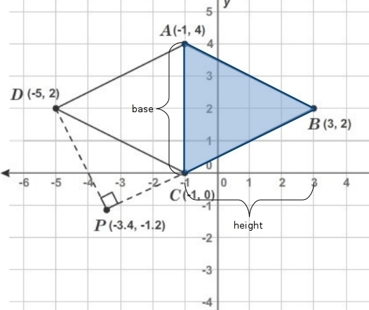 so, notice there, the rhombus is really just two triangles, each triangle has a base of 4 units and a height of also 4 units, so simply let's get the area of a triangle and multiply that times 2.