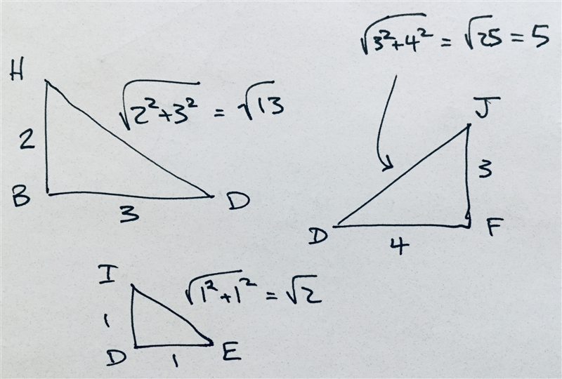 ... HD = √(2² +3²) = √(4+9) = √13 ≈ 3.6