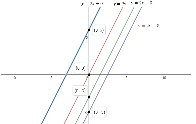 Using these properties, the second graph gets shifted upward by 6 units. Hence, it passes through (0,6)
