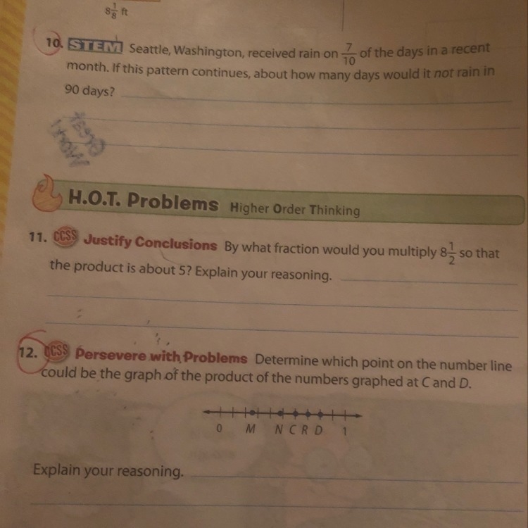 10. If it rained 7/10 of the days, 3/10 days did not receive rain.