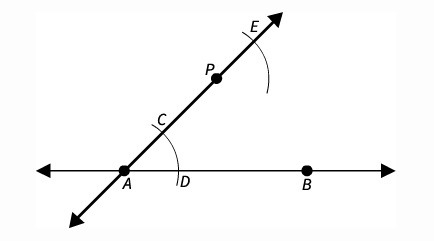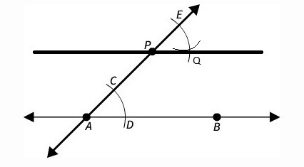 To draw a parallel to the line AB passing through the point P, first we have to draw the same angle CAD on point P.