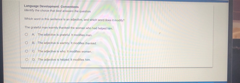 an adjective is used to describe or modify a noun or verb.Warmly Thanked is an example of this. The woman was Thanked warmly.