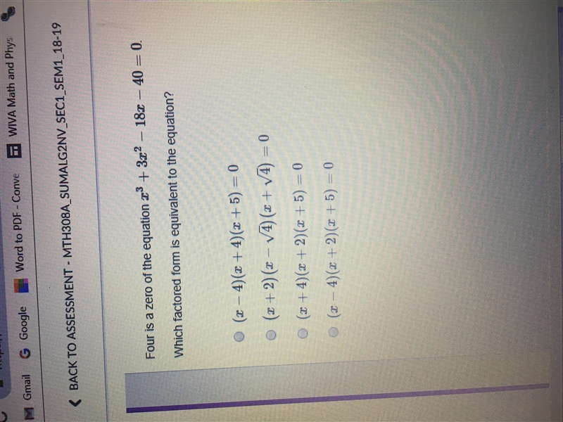 If 4 is a root, then a factor must be x - 4.