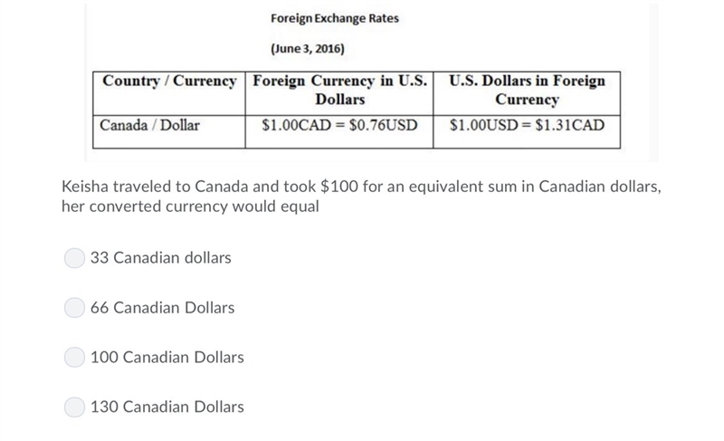 1.00 multiplied by 1.31 is 131 so your answer is 130 Canadian dollars