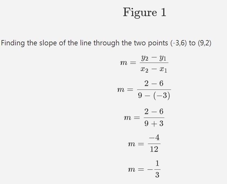 First find the slope of the line through the two given points. Use the slope formula for this. See figure 1 in the attached images. After following those steps, the slope happens to be -1/3. From here, you flip the fraction to get -3/1 and then you flip the sign to get +3/1 or just 3/1 which is equivalent to 3. This is the slope of the perpendicular line. The slope of the answer is m = 3, which we'll use later to help determine the y intercept.