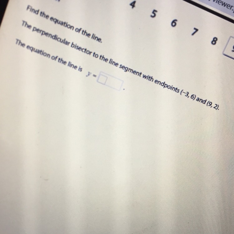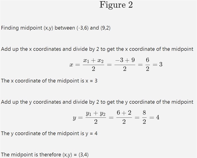 Before we can find the y intercept, we need to know what point is on this perpendicular bisector. Recall that "bisect" means to "cut in half". So we need to find the point that cuts the segment from (-3,6) to (9,2) in half. In short: we need the midpoint. Refer to figure 2 (attached image below) to see how I found the midpoint. The short version is that you add up the corresponding coordinates and then divide by 2. The midpoint found is (3,4)