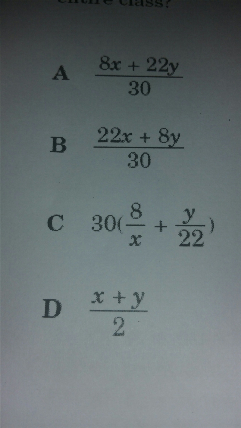 It's C because you need to find how many points each student earned per grade (freshman & sophomore). Then you multiply it by 30 to find out how many points each student scored in the whole class.
