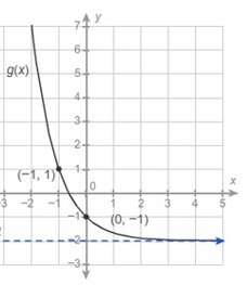 The graph of g(x) is shown below: 1) Write the equation of the line for its asymptote. 2) The function g(x) is a transformation of the parent function f(x)=13x. Describe the tra…