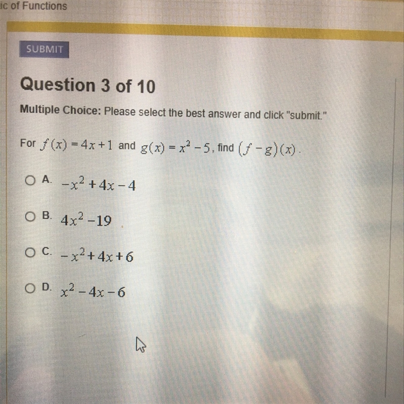 The notation itself suggests that you have to subtract the g(x) from f(x). Thus,