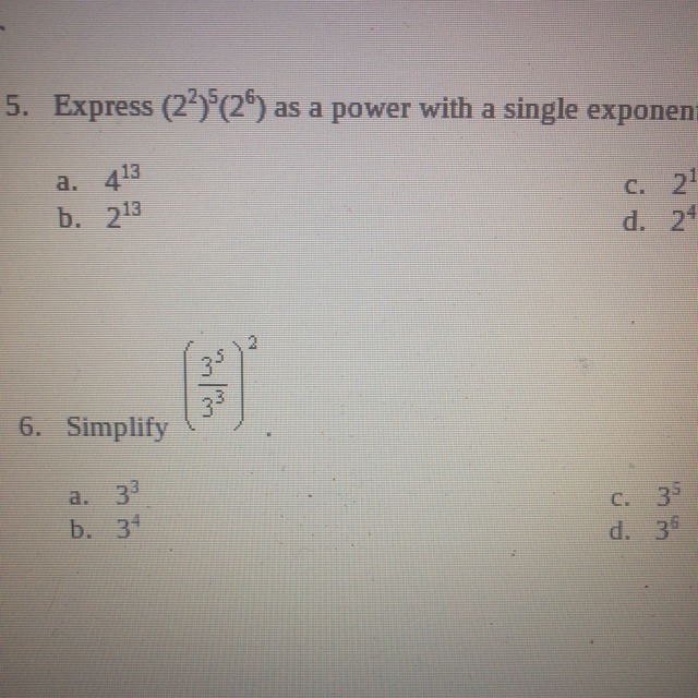 First we're gonna use the exponent rule, so, 3^5/3^3 = 3^5-3 = 3^2.